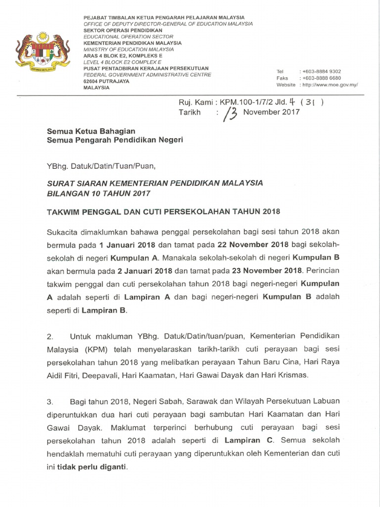 Kalendar cuti persekolahan tahun 2018 ini dibahagikan kumpulan a dan b. Cuti panjang malaysia untuk 2018, khas untuk anda yang via amazingnara.com. Semoga kalender cuti umum 2018 dan takwim cuti sekolah 2018 ini dapat membantu anda dalam membuat perancangan awal percutian keluarga seperti memilih destinasi, menyediakan bajet, membeli tiket penerbangan, menempah hotel dan sebagainya. Cuti umum & cuti sekolah malaysia 2018. Kumpulan a meliputi negeri kedah, johor, terengganu dan kelantan. Mula kerja 1 1 2010 layak cuti 1 1 2011 tempoh ambil cuti hingga 1 1 2012. Kalendar tahun 2018 bagi setiap bulan beserta cuti sekolah, cuti negeri dan cuti umum malaysia. Kami menyenaraikan maklumat cuti persekutuan dan juga cuti negeri. Sila lawat kabinet.gov.my untuk pengumuman asal. Skrol ke bawah untuk melihat senarai kalendar seluruh negara atau pilih kalendar negeri anda. Cuti umum pilihan raya (many regions) Dikemaskini dengan cuti sekolah tahun 2018! Maka kalendar ini hanya boleh menjadi rujukan apabila sudah sampai pada tahun 2018