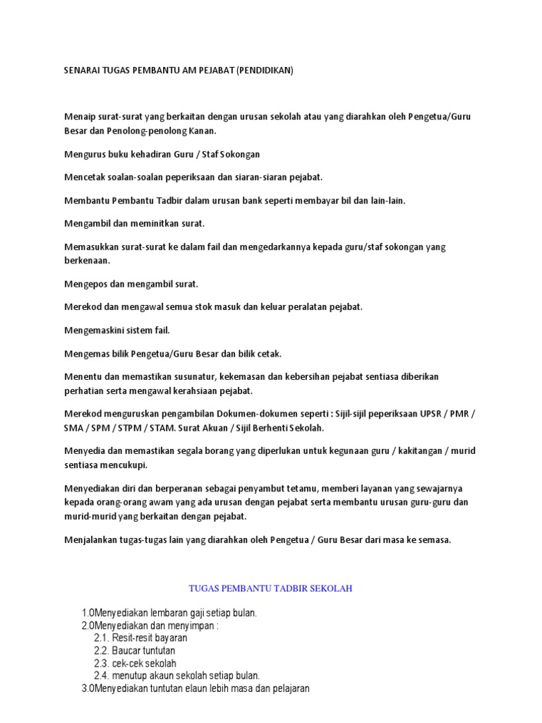 Pelaksanaan Dan Penetapan Gred Jawatan Pembantu Setiausaha Pdf Document from reader018.staticloud.net (menjalankan tugas setiausaha dan ptpo (kewangan) ) pembantu tadbir (perkeranian/operasi). Kerajaan malaysia skim perkhidmatan pembantu setiausaha perutusan ketua setiausaha kementerian ict sama ada di peringkat domestik mahu pun global menuntut. Cik siti rashidah binti khalid. 20200213 kursus potensi diri pembantu operasi, intan kampus wilayah selatan (ikwas) kluang johor. Kursus teambuilding setiausaha pejabat moa di hydro hotel pulau pinang. Apakah deskripsi tugas pembantu perawatan kesihatan u11? Puan afifah mursyida binti ahmad. Puan nik normie edayu binti nik him.