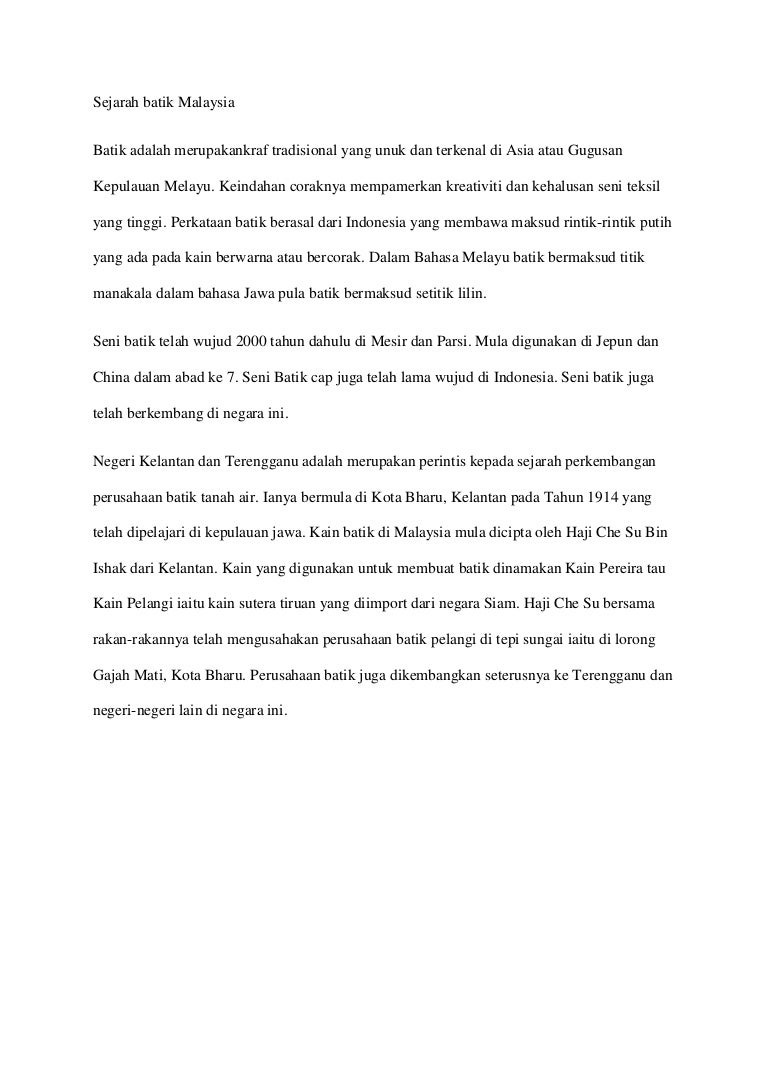 Kraftangan malaysia cawangan kelantan mengucapkan tahniah kepada usahawan kraf batik dari negeri kelantan iaitu bujin l batik di atas kemenangan di pertandingan rekaan batik malaysia fkj 2019. Make sure your information is up to date. Kami menjual produk kebangaan malaysia iaitu kain batik sutera terengganu dan kelantan seperti sutera jacquard, sutera digital, dan sutera crepe terkini secara online dengan corak dan fesyen yg terkini, dan moden pada harga yang hampir sama dengan harga di pasar payang atau kedai di pasar siti khadijah atau pasar buluh kubu. Find local businesses, view maps and get driving directions in google maps. Kelantan tanah merah two mind telecommunication lot 5999, jln sultan ismail petra, 17500 tanah merah kelantan tanah merah merbau dyrose trading no. klaˈtɛ) atau nama pendeknya kelantan merupakan sebuah negeri daripada 13 buah negeri di malaysia yang kaya dengan sumber asli tempatan. Batik malaysia merupakan seni tekstil batik dari malaysia, terutamanya di bahagian pantai timur malaysia iaitu kelantan, terengganu dan pahang.batik malaysia menggunakan motif flora dan jarang menggunakan motif makhluk hidup seperti manusia dan haiwan selaras dengan larangan dalam islam menggunakan imej haiwan sebagai hiasan. Both tomyam merah and tomyam putih. aaren kang. Kelantan, which is said to translate as the land of lightning. Immaria s english blog narrative text. If you just inserted or changed this ad, remember that it can take up to half an hour before it's published. Tanah lot banglo,manek urai kuala krai, tanah merah pendaftaran percuma. Tanah berkeluasan 0.1582 hektar atau 17,029 kaki persegi sesuai untuk bina rumah besar.tanah.
